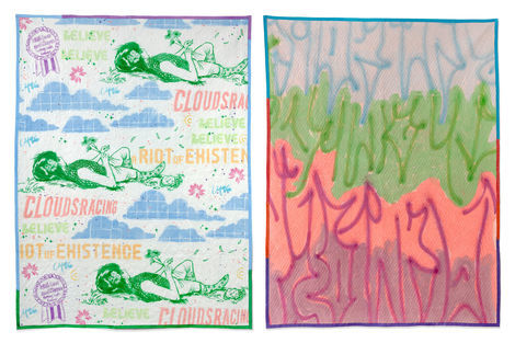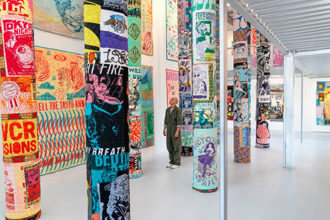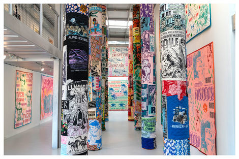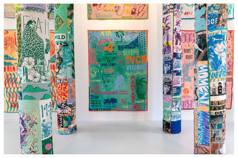 FAILE’s fascination with transformation and form is central to their fabric works, where they explore the tension between preserving fragments of the past and weaving them into new stories. Like layers of posters, beauty ads, and event flyers that cling to the structures of New York, these works form a dynamic tapestry of time.